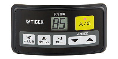よく使う90度、80度、70度の目安温度がワンタッチで設定できるキーつき。ひと目でわかるデジタル温度表示。