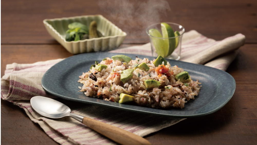 炊きあがったら、4と粗くみじん切りにしたバジルを加えて軽く混ぜ合わせ、器に盛りつける。