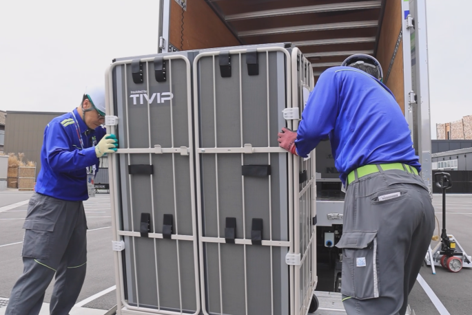 This technology was also adopted for insulated boxes to transport food ingredients to restaurants from inside and outside the Osaka-Kansai Expo venue. Because it can maintain temperature without a power source, it enables the transport of frozen and refrigerated goods on standard trucks, as well as “consolidated transport” of cargo requiring different temperature zones simultaneously.