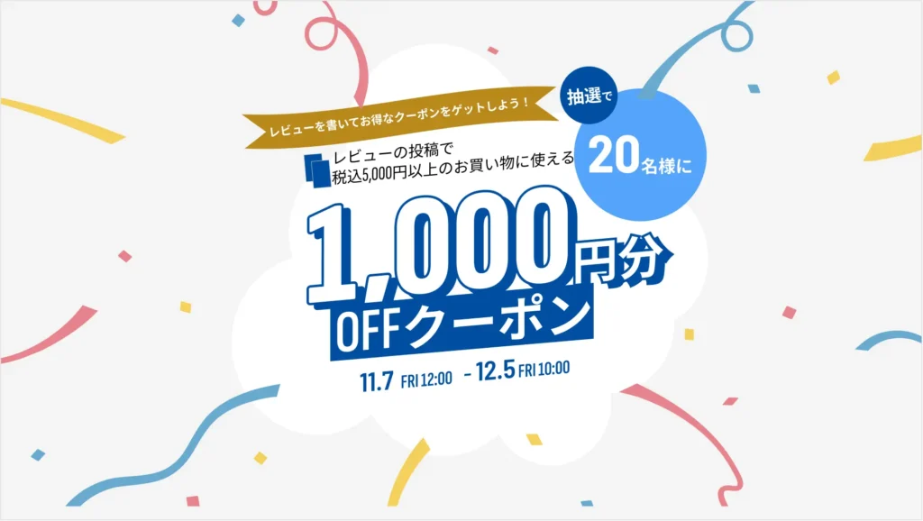 20 people will receive a 1,000 yen off coupon for submitting a review!