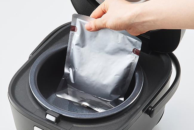 Fill the inner pot with water and a retort pouch and select the High Temperature Cooking setting. Once the time is set and the Cook key is pressed, the pouch can be left alone until the buzzer sounds, which is very convenient when you are busy.