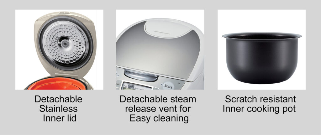 The cooking plate is specially designed so the flavors from the cooking plate do not affect the flavor or texture of the rice.