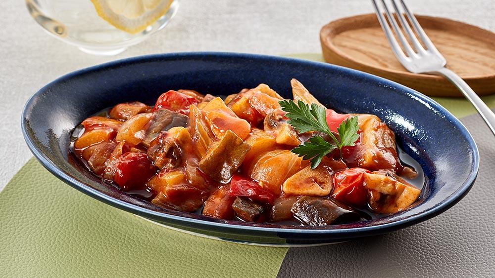 Cut the zucchini and eggplant into 2cm cubes. Lightly sprinkle with salt, let sit briefly, then pat dry.