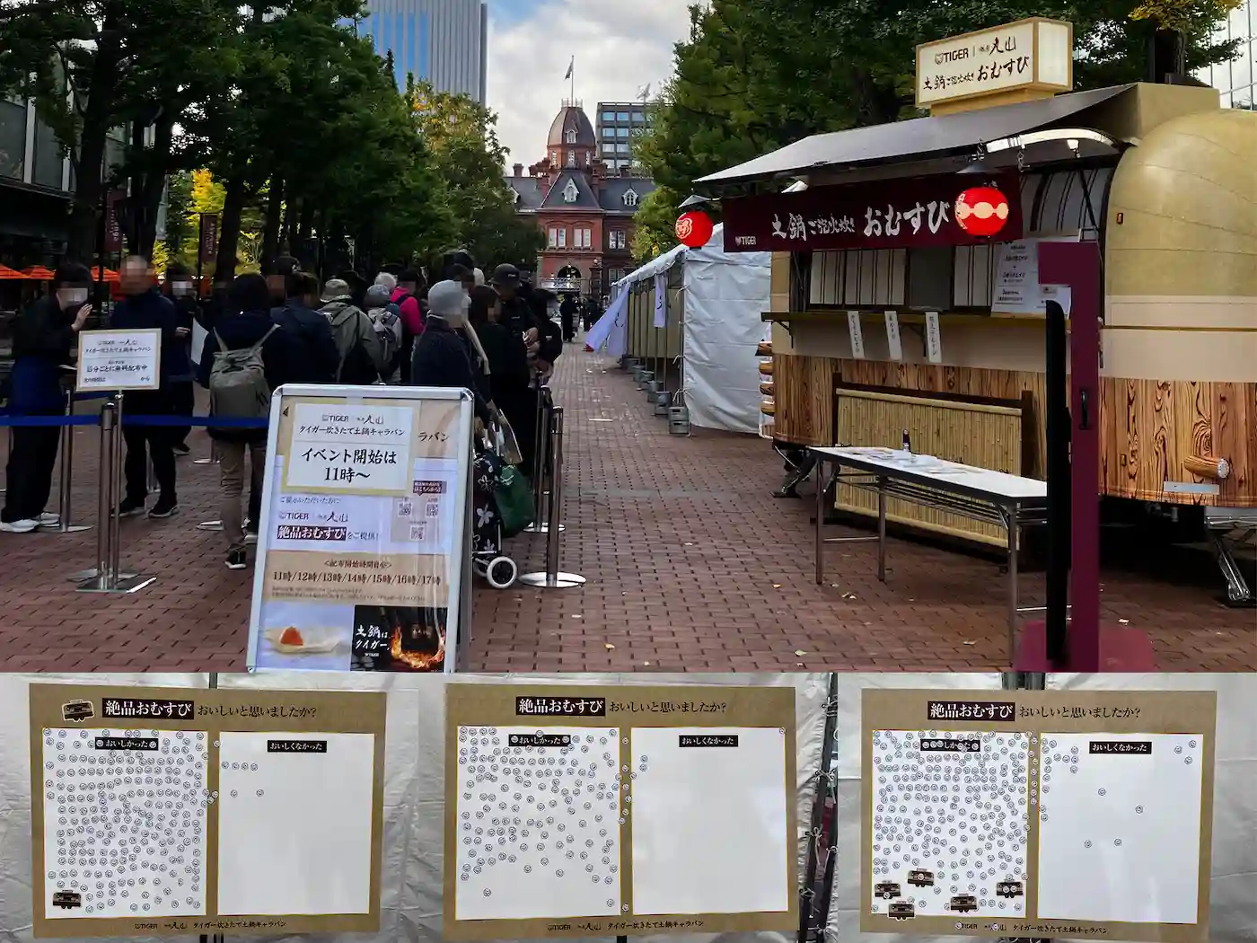 イベント開始前から100名以上の方にお並びいただき、用意していた800セットのおむすびが予定より2時間も早く売り切れとなる大盛況で終えることができました!