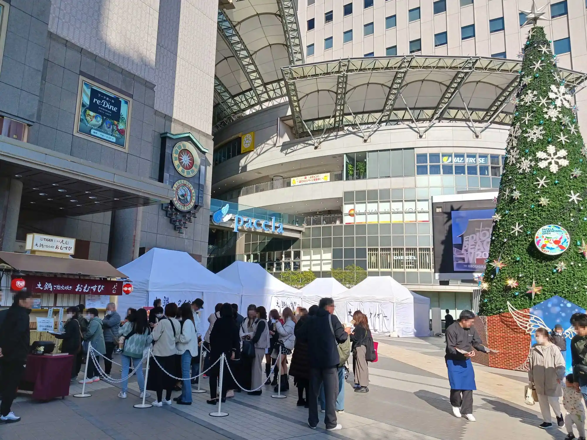 福岡はすっかり冬の装いでクリスマスツリーの目の前に土鍋号を設置してのイベントとなりました!