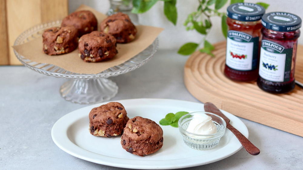 お好みでクロテッドクリーム(乳不使用)やジャムを添える。