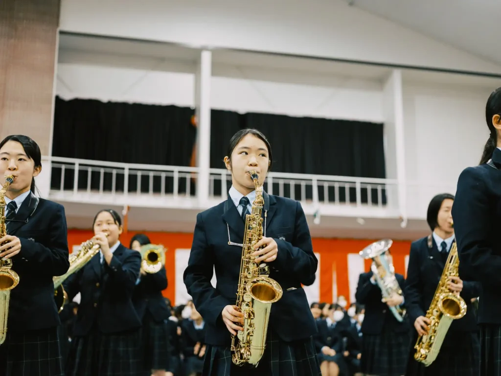演奏された曲は、3年生たちが体育祭でダンスを披露した思い出の曲。12大会連続で金賞を受賞している吹奏楽部の演奏は、アンサンブルが整っていることに加えて、きらびやかで力強く、伸びやかな音色でした。卒業を控える先輩たちのことを想って、一生懸命練習を重ねてきたことが伝わります。