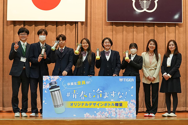 保温力の高い魔法瓶にかけて、学生時代の熱い青春の思い出が、ずっと“冷めないように”という願いを込め、青春の「温かい記憶」「強い絆」を思い出し、未来への背中を押してくれるアイテムとして、オリジナルデザインの真空断熱ボトルをプレゼント。過去には、当選校の卒業生全員へのボトル提供のほか、「日本高校ダンス部選手権 ダンススタジアム」出場の高校生2,000名以上にも提供しています。