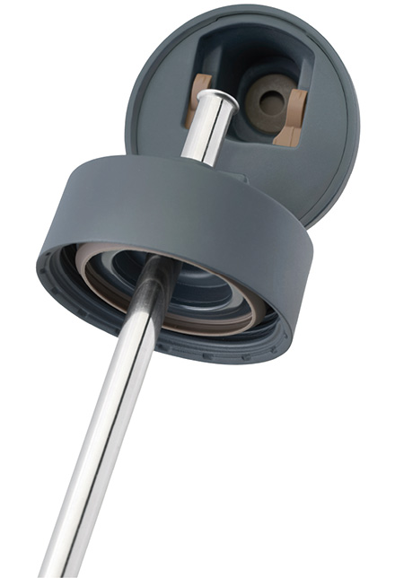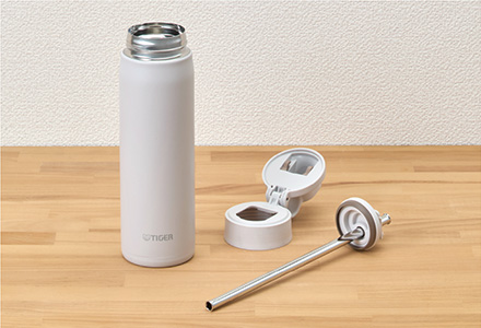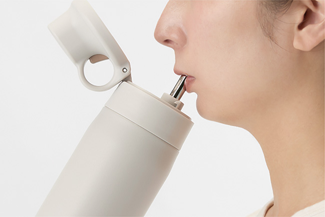 ステンレス製ストローを飲み口に採用しました。ボトルを大きく傾ける必要がなく、らくにお飲みいただけます。