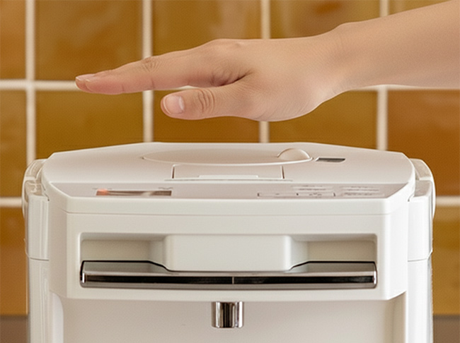 内容器の水温を検知して湯沸かしヒーターへの通電を自動OFF。