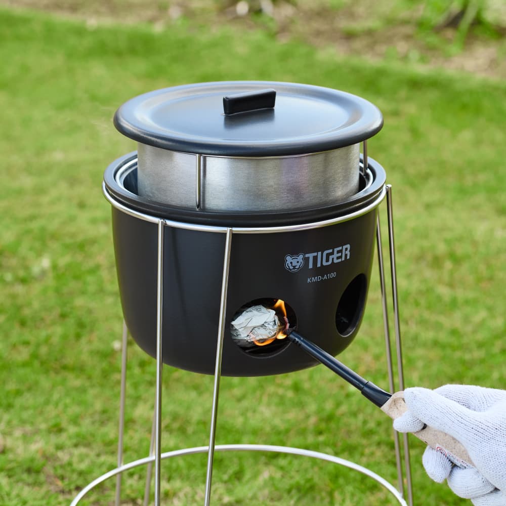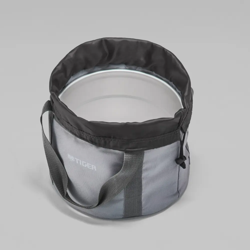 炊き上がったごはんの温かさをキープします。さらに、炊飯の最終工程である「むらし」の際の追加作業をなくし、収納時には本体を守る強固な保護カバーになり、ポーチと組み合わせればバケツにもなる多機能設計です。