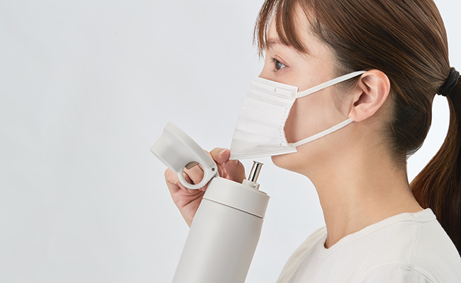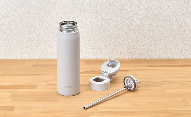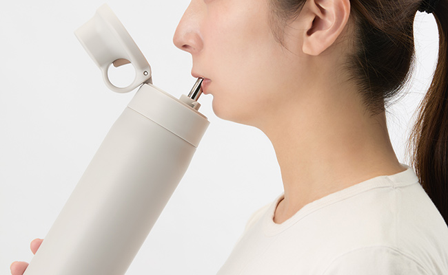 衛生的に使用できるステンレス製ストローを飲み口に採用。ボトルを大きく傾ける必要がなく、らくにお飲みいただけます。