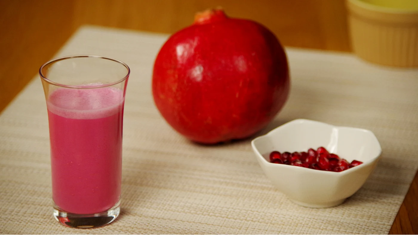 将步骤3的混合物倒入滤网中过滤。(※石榴所含的单宁酸虽有助于预防或改善腹泻,但也可能抑制消化吸收。给幼儿(学步儿童/婴儿)食用时请控制用量。)